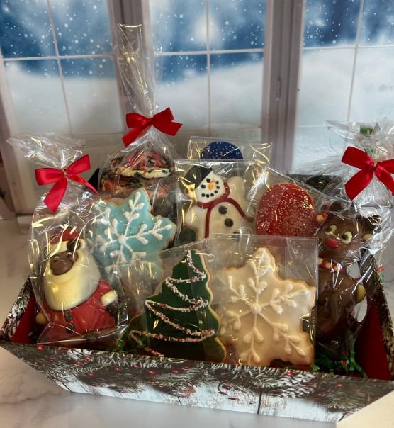 Gift Packages on | No Comments Gift Packages Mini Cupcake Trays and Cookie Gift Baskets Assorted Items and Packaging available Holiday Custom Logo and Medium Cookie Gift Box Perfect for clients to remember you!!A Logo Cookie and an assortment of 12 of our best-selling cookies in a gift box. Holiday Cookie Assortment for Shipping We can ship our one dozen cookie assortment anywhere in the U.S.12 of our bestselling flavors individually packaged. Mini Cupcakes Holiday Tray Our 30 Piece Mini Cupcake Holiday Assortment Tray$60.00 Gable Box of Cookies Gift Handle Box of Cookies12 Individually Wrapped Assortment of our bestselling cookies.$45.00 Mini Cupcakes Holiday Tray Our 50 Piece Mini Cupcake Holiday Assortment Tray$110.00 Gift Basket Large Assorted Items available Gift Basket Small Assorted Items available Holiday Cookie Gift Platter Holiday Sweets Platter Mini Cupcake Tray Available in sizes of 30, 55 or 72. Cookie Gift Bags Cookie Tray Our Cookie Party Trays are available in several sizes. Call us for additional information. Boxed Cookies